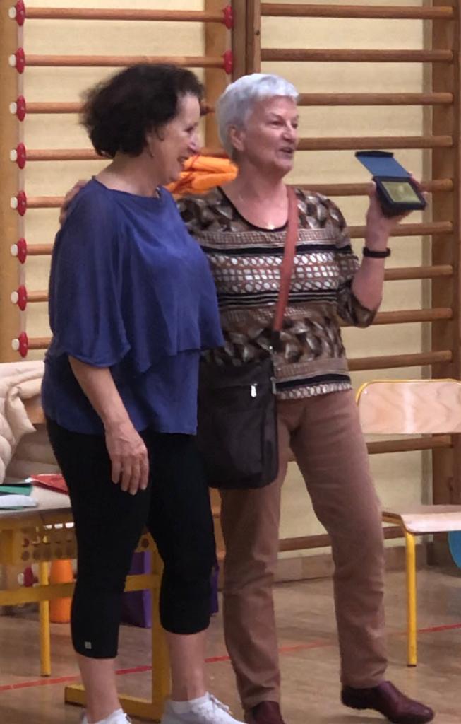 APRES LA MARCHE LE RECONFORTRemise de médaille d’ancienneté de plus de 20 ans pour notre animatrice Christine Remise de médaille à Christine par la présidente du CODEP